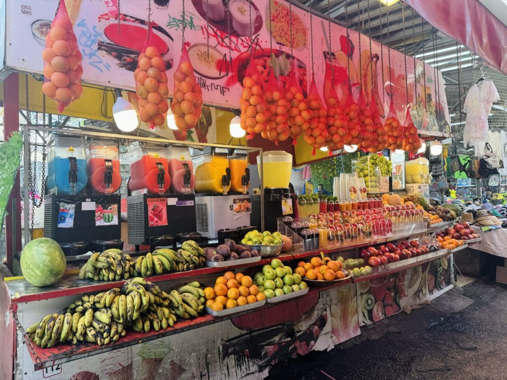 Và rồi tôi tìm đến Carmel Market, khu chợ trời lớn nhất Tel Aviv. Những quầy trái cây đầy ắp sắc màu: lựu đỏ mọng, cam vàng, chà là, nho, đào, sung… Hương vị của đất và nắng dường như hội tụ trên từng sạp hàng. Tôi đứng giữa khu chợ ấy mà không khỏi ngạc nhiên: ngay trên mảnh đất từng được gắn với hình ảnh sa mạc khô cằn trong trí tưởng tượng của mình, lại có thể tràn đầy trái ngọt đến thế.